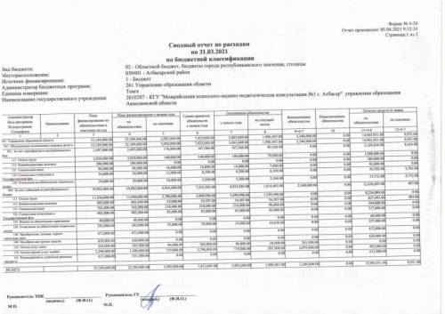 Сводный отчет по расходам по 31.03.2021 год по бюджетной классификации